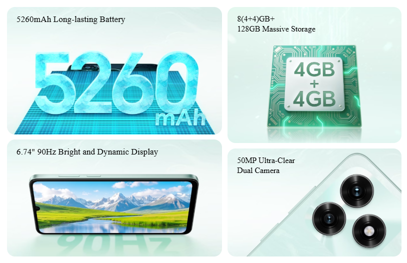 هر دو مدل از پردازنده مدیاتک هلیو G81 بهره میبرند که شامل یک پردازنده هشت هستهای (۲ هسته Cortex-A75 با فرکانس ۲ گیگاهرتز + ۶ هسته Cortex-A55 با فرکانس ۱.۷ گیگاهرتز)، یک پردازنده گرافیکی ARM Mali-G52 MC2 با فرکانس ۸۲۰ مگاهرتز، حداکثر ۴ گیگابایت رم، ۴ گیگابایت رم مجازی(Turbo Ram) و حداکثر ۱۲۸ گیگابایت حافظه داخلی است. هر دستگاه دارای یک باتری ۵۲۶۰ میلیآمپر ساعتی با شارژ سریع ۱۵ واتی است.